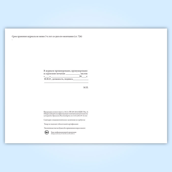 Вы получаете печатную продукцию прошнурованной и c местом для вашей печати в соответствии с действующими нормативными документами: