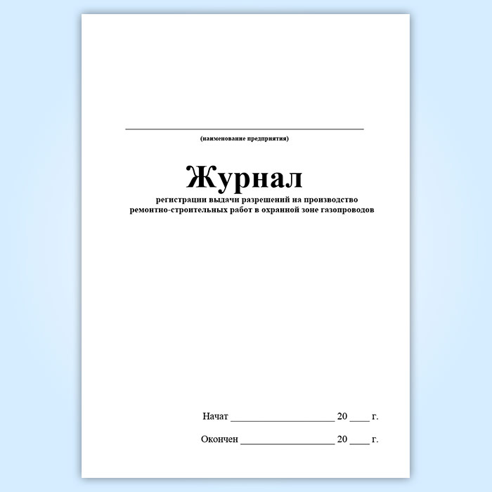 Журнал регистрации выдачи разрешений на производство ремонтно-строительных работ в охранной зоне газопроводов (ГЭГ-14) в Улан-Удэ купить