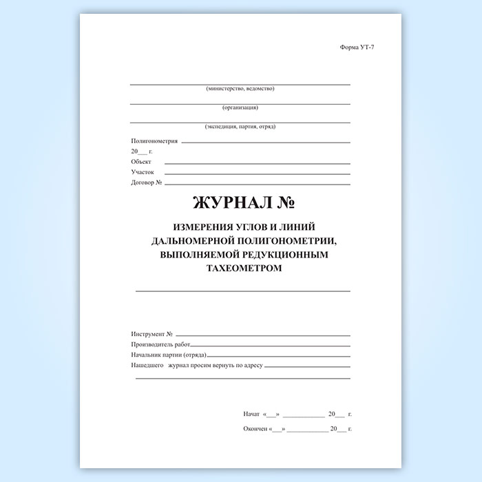 Журнал измерения углов и дальномерной полигонометрии, выполняемой редукционным тахеометром (форма УТ-7) в Улан-Удэ купить