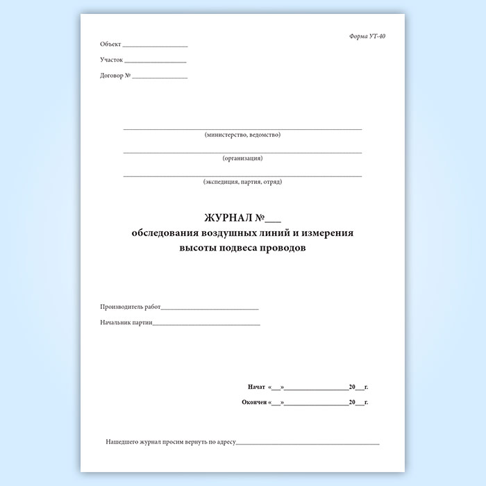 Журнал обследования воздушных линий и высоты подвеса проводов (форма УТ-40) в Улан-Удэ купить