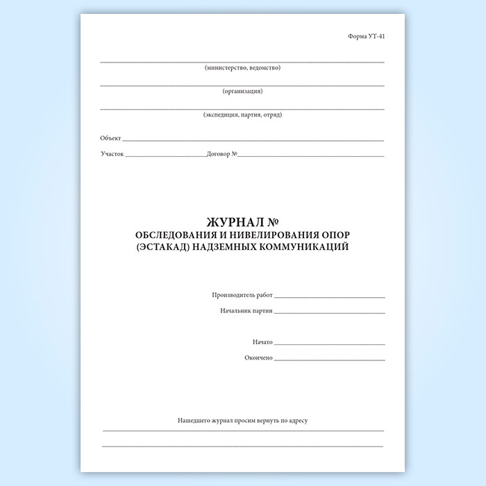 Журнал обследования и нивелирования опор (эстакад) надземных коммуникаций (форма УТ-41) в Улан-Удэ купить