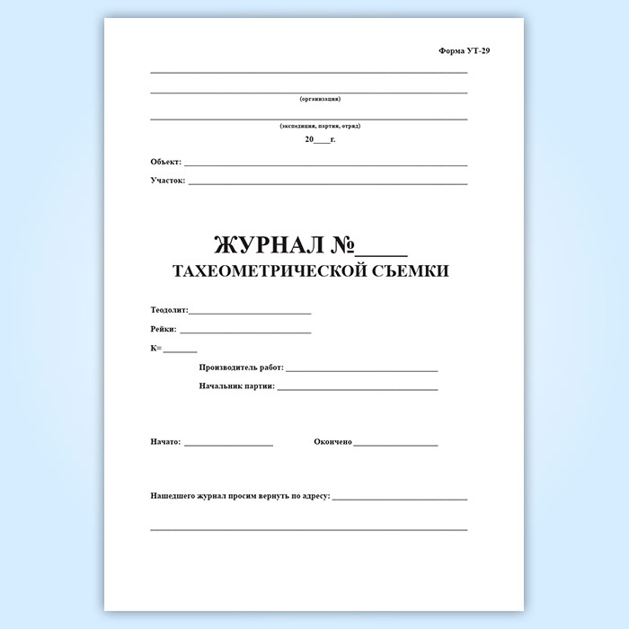 Журнал тахеометрической съемки (форма УТ-29) в Улан-Удэ купить