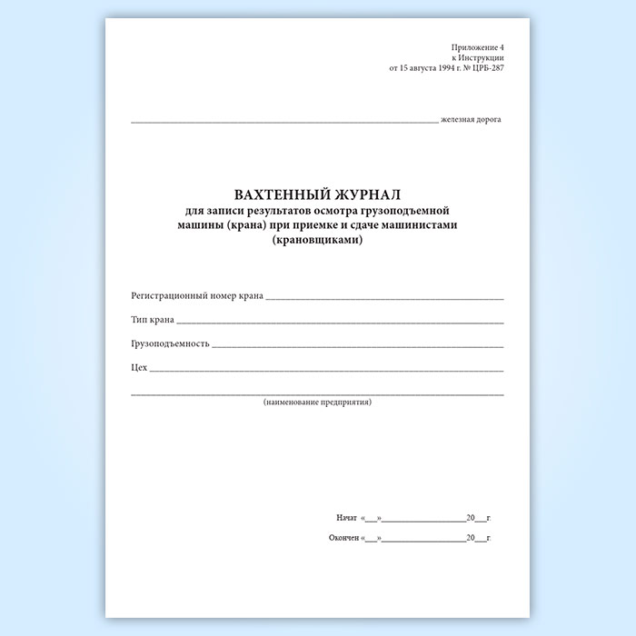 Вахтенный журнал для записи результатов осмотра грузоподъемной машины (крана) при приемке и сдаче машинистами (крановщиками) в Улан-Удэ купить