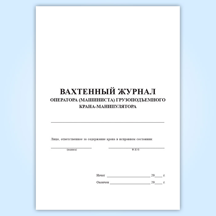Вахтенный журнал оператора (машиниста) грузоподъемного крана-манипулятора в Улан-Удэ купить