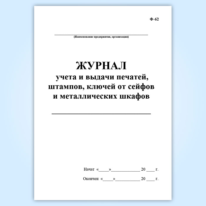 Журнал учета и выдачи печатей, штампов, ключей от сейфов и металлических шкафов (Ф-62) в Улан-Удэ купить