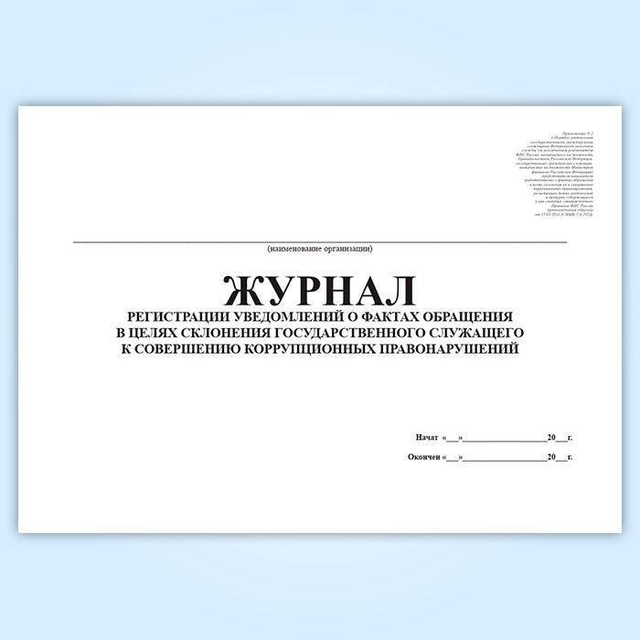 Журнал регистрации уведомлений о фактах обращения в целях склонения государственного служащего к совершению коррупционных правонарушений в Улан-Удэ купить