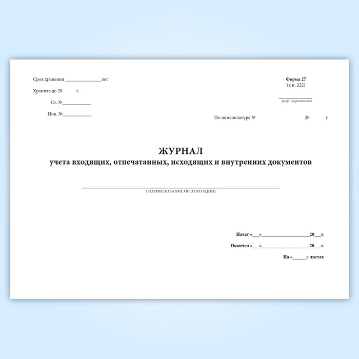 Журнал учета входящих, отпечатанных, исходящих и внутренних документов (горизонтальный) в Улан-Удэ купить