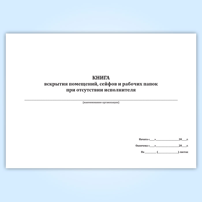 Книга вскрытия помещений, сейфов и рабочих папок при отсутствии исполнителя в Улан-Удэ купить