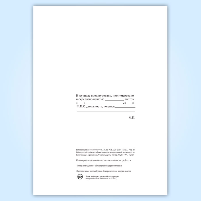 Вы получаете печатную продукцию прошнурованной и c местом для вашей печати в соответствии с действующими нормативными документами: