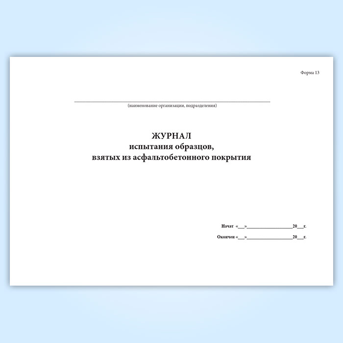 Журнал испытания образцов, взятых из асфальтобетонного покрытия (форма 13) в Улан-Удэ купить