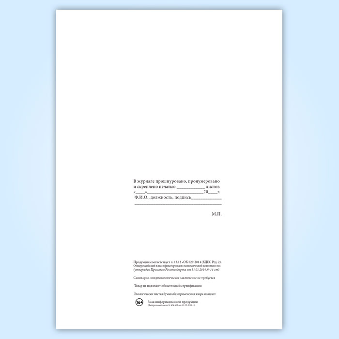 Вы получаете печатную продукцию прошнурованной и c местом для вашей печати в соответствии с действующими нормативными документами: