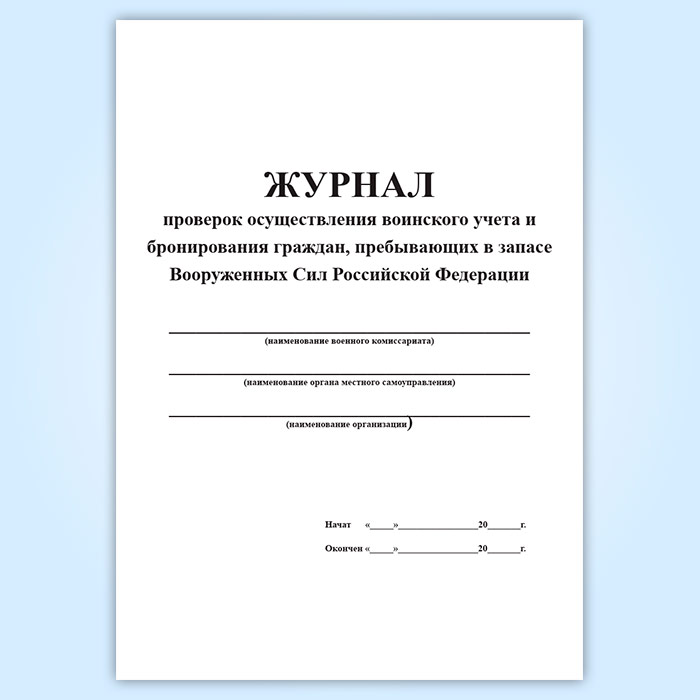 Журнал проверок осуществления воинского учета и бронирования граждан, пребывающих в запасе Вооруженных Сил Российской Федерации в Улан-Удэ купить