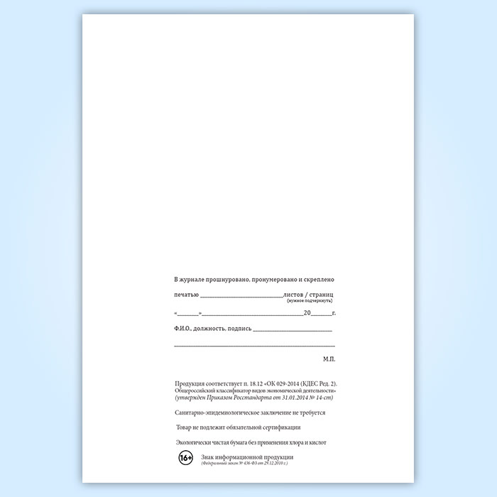 Вы получаете печатную продукцию прошнурованной и c местом для вашей печати в соответствии с действующими нормативными документами: