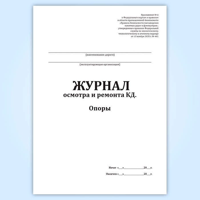Журнал осмотра и ремонта канатной дороги. Опоры (форма № 6) в Улан-Удэ купить