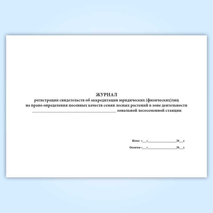Журнал регистрации свидетельств об аккредитации юридических (физических) лиц на право определения посевных качеств семян лесных растений в зоне деятельности зональной лесосеменной станции в Улан-Удэ купить