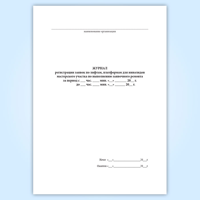 Журнал регистрации заявок по лифтам, платформам для инвалидов мастерского участка по выполнению заявочного ремонта в Улан-Удэ купить