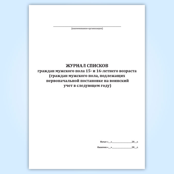 Журнал списков граждан мужского пола 15- и 16-летнего возраста (граждан мужского пола, подлежащих первоначальной постановке на воинский учет в следующем году) в Улан-Удэ купить