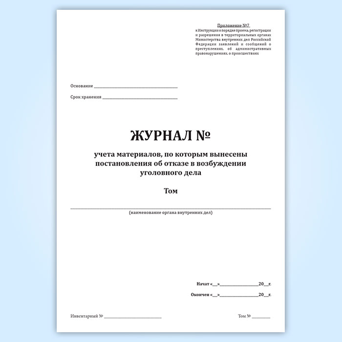 Журнал учета материалов, по которым вынесены постановления об отказе в возбуждении уголовного дела в Улан-Удэ купить