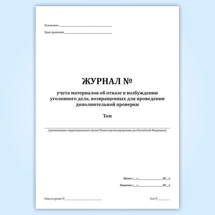 Журнал учета материалов об отказе в возбуждении уголовного дела, возвращенных для проведения дополнительной проверки в Улан-Удэ купить