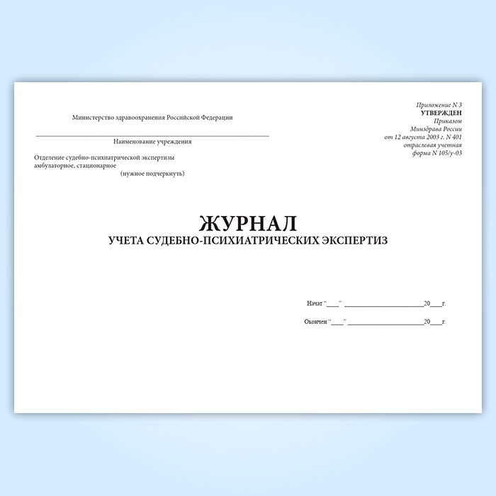 Журнал учета судебно-психиатрических экспертиз (форма 105/у-03) в Улан-Удэ купить