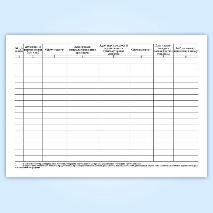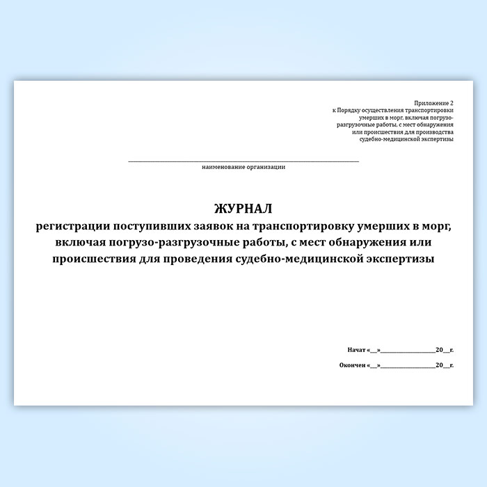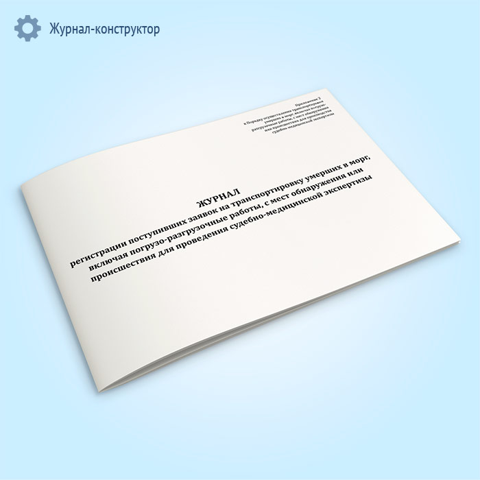 Журнал регистрации поступивших заявок на транспортировку умерших в морг, включая погрузо-разгрузочные работы, с мест обнаружения или происшествия для проведения судебно-медицинской экспертизы в Улан-Удэ купить
