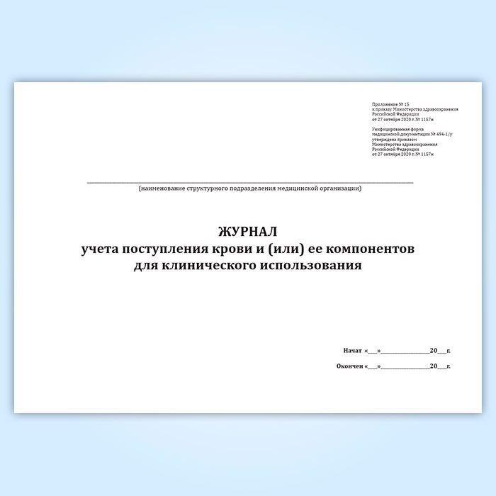 Журнал учета поступления крови и (или) ее компонентов для клинического использования (форма № 494-1/у) в Улан-Удэ купить