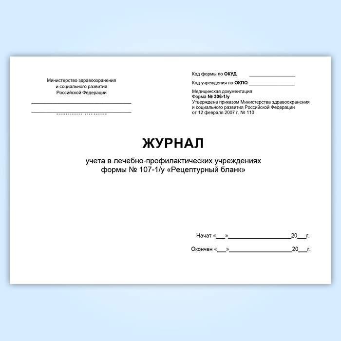 Журнал учета в лечебно-профилактических учреждениях рецептурных бланков формы № 107-1/у (форма № 306-1/у) в Улан-Удэ купить