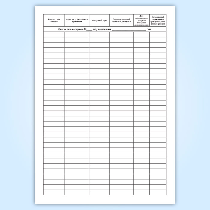 Поименный и повозрастной список граждан терапевтического, в том числе цехового, участка (участка врача общей практики (семейного врача)) в Улан-Удэ купить
