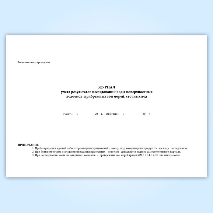 Журнал учета результатов исследований воды поверхностных водоемов, прибрежных зон морей, сточных вод (форма № 324-у) в Улан-Удэ купить