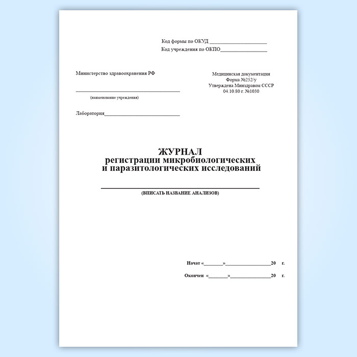 Журнал регистрации микробиологических и паразитологических исследований (форма 252/у) в Улан-Удэ купить