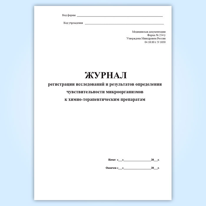 Журнал регистрации исследований и результатов определения чувствительности микроорганизмов к химио-терапевтическим препаратам (форма 254/у) в Улан-Удэ купить