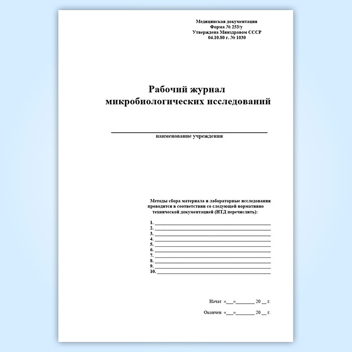 Рабочий журнал микробиологических исследований (форма 253/у) в Улан-Удэ купить