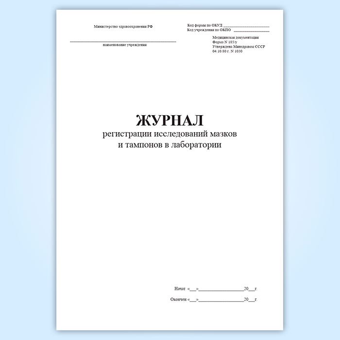 Журнал регистрации исследований мазков и тампонов в лаборатории (форма 185/у) в Улан-Удэ купить