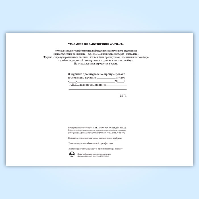 Вы получаете печатную продукцию прошнурованной и c местом для вашей печати в соответствии с действующими нормативными документами: