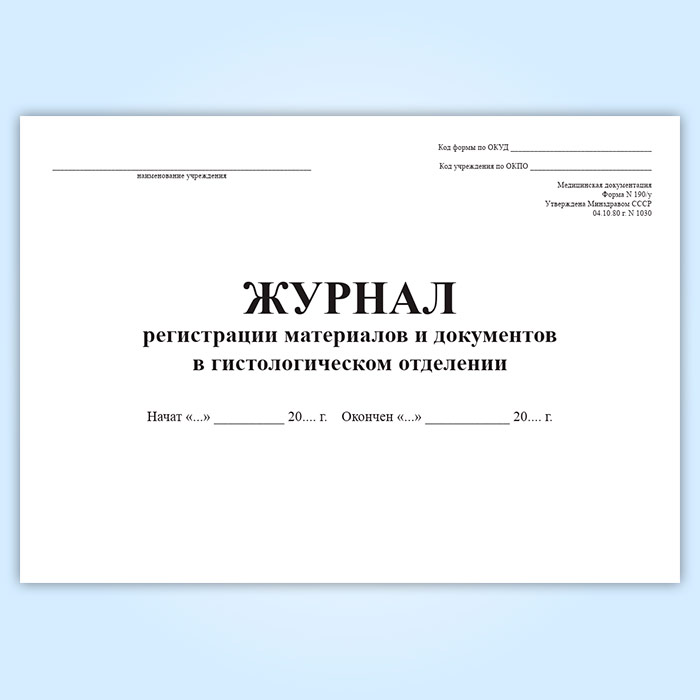 Журнал регистрации материалов и документов в гистологическом отделении (форма 190/у) в Улан-Удэ купить