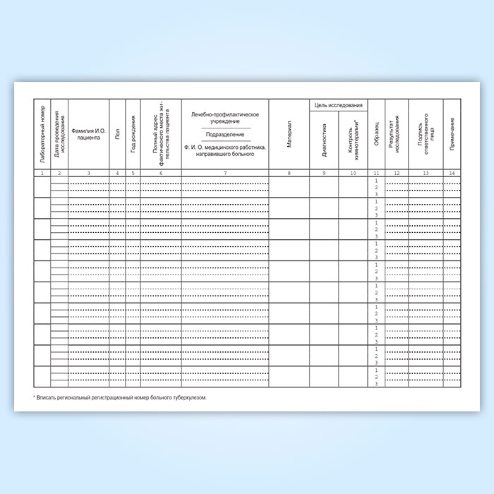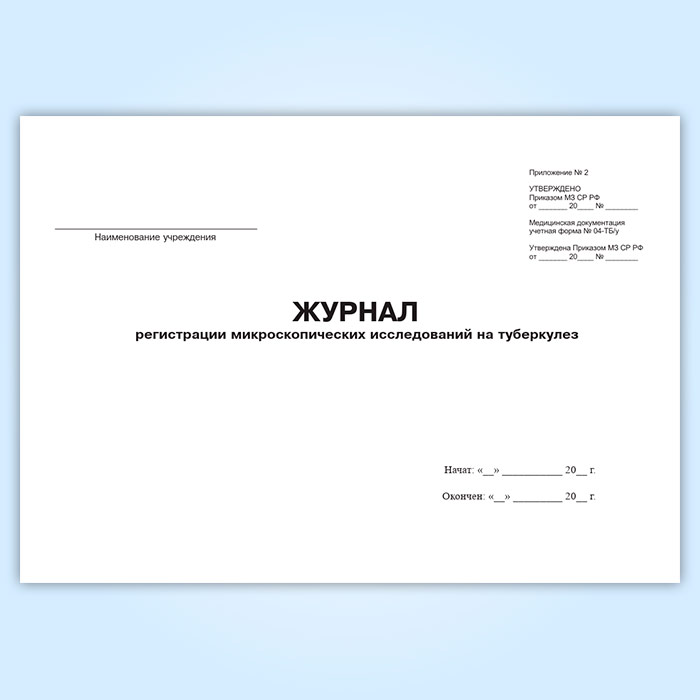 Журнал регистрации микроскопических исследований на туберкулез (форма 04-ТБ/У) в Улан-Удэ купить