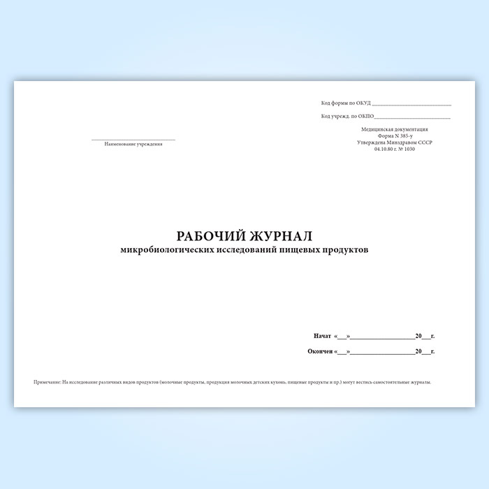 Рабочий журнал микробиологических исследований пищевых продуктов (форма 385/у) в Улан-Удэ купить