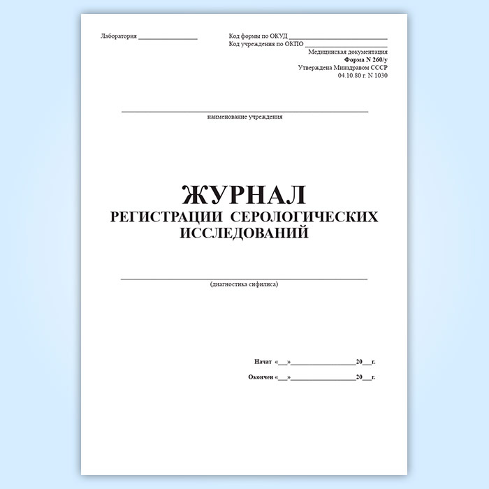 Журнал регистрации серологических исследований (диагностика сифилиса) (форма 260/у) в Улан-Удэ купить