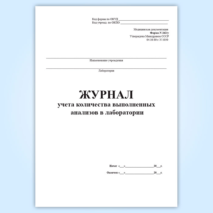 Журнал учета количества выполненных анализов в лаборатории (форма 262/у) в Улан-Удэ купить