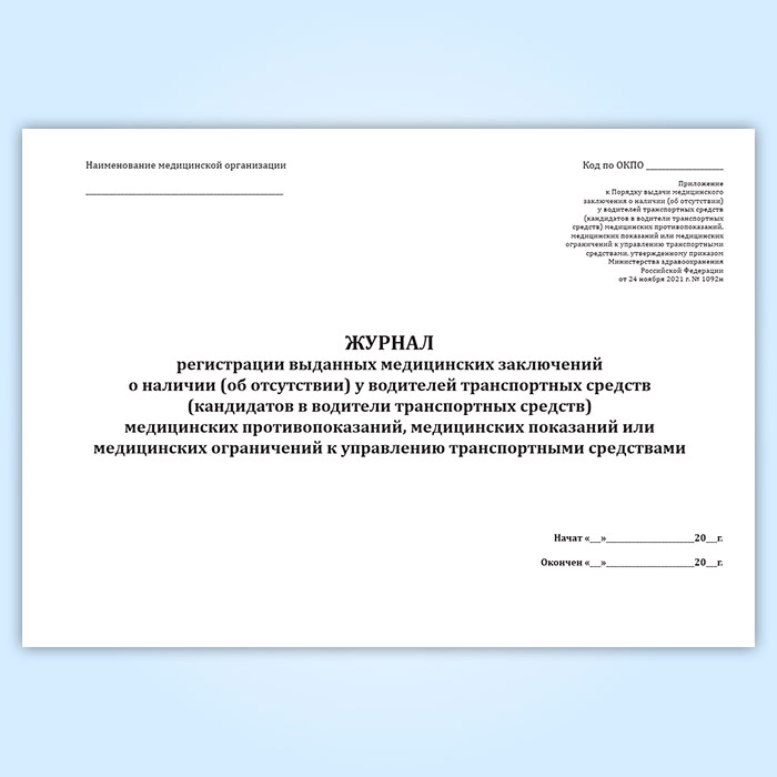 Журнал регистрации выданных медицинских заключений о наличии (об отсутствии) у водителей транспортных средств (кандидатов в водители транспортных средств) медицинских противопоказаний, медицинских показаний или медицинских ограничений к управлению транспортными средствами в Улан-Удэ купить