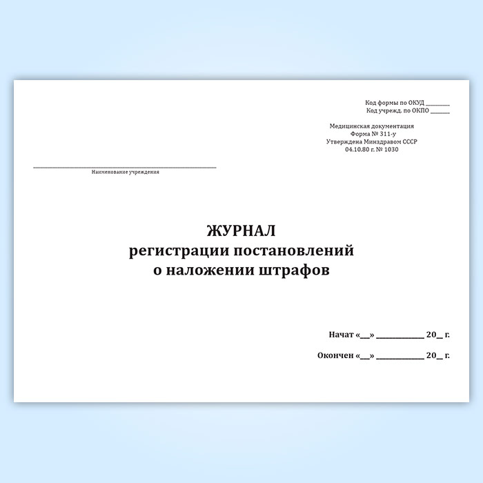 Журнал регистрации постановлений о наложении штрафов (форма 311-у) в Улан-Удэ купить