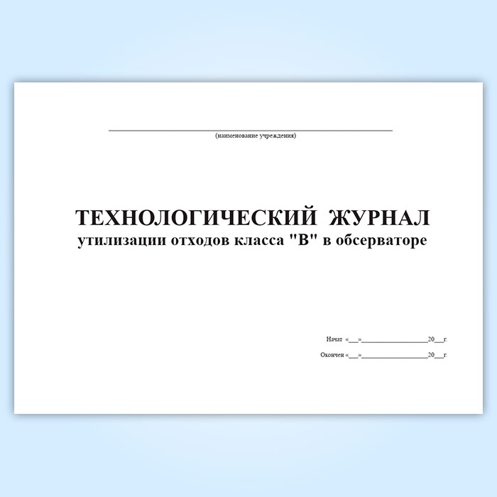Технологический журнал утилизации отходов класса «В» в обсерваторе в Улан-Удэ купить