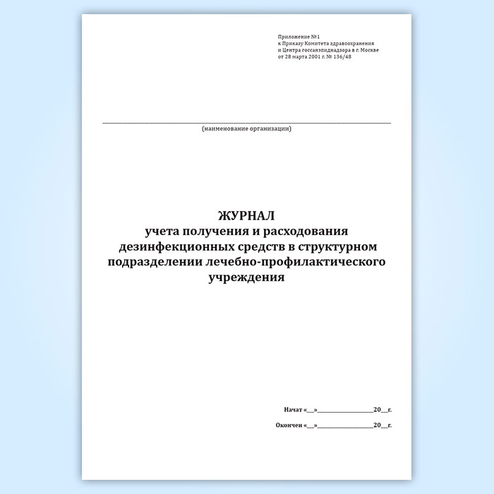 Журнал учета получения и расходования дезинфекционных средств в структурном подразделении лечебно-профилактического учреждения в Улан-Удэ купить