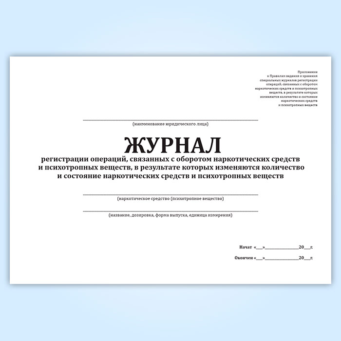 Журнал регистрации операций, связанных с оборотом наркотических средств и психотропных веществ, в результате которых изменяются количество и состояние наркотических средств и психотропных веществ в Улан-Удэ купить