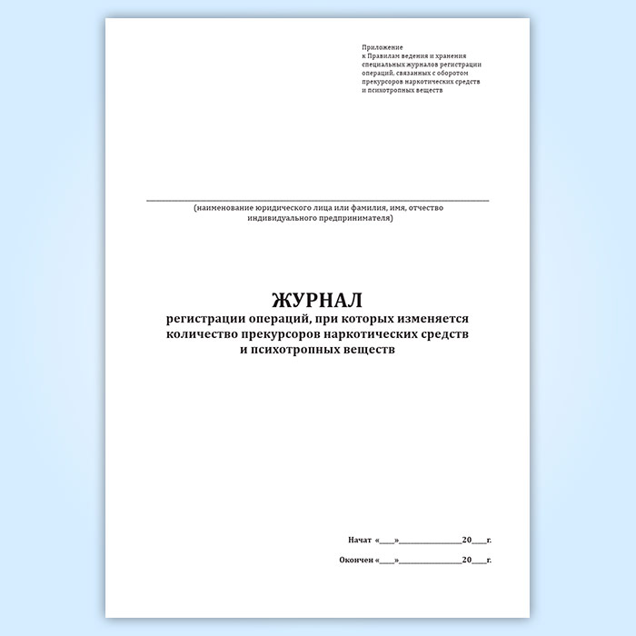 Журнал регистрации операций, при которых изменяется количество прекурсоров наркотических средств и психотропных веществ в Улан-Удэ купить