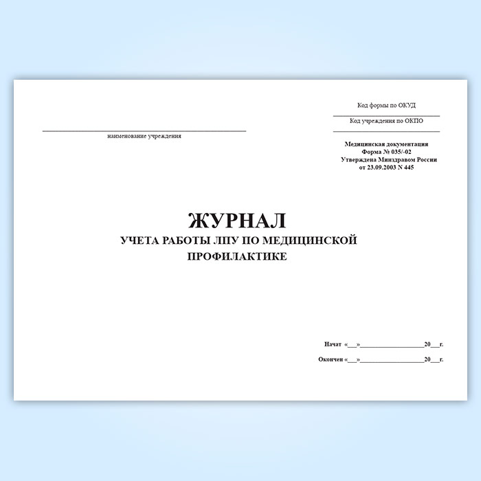 Журнал учета работы ЛПУ по медицинской профилактике (форма № 035/-02) в Улан-Удэ купить