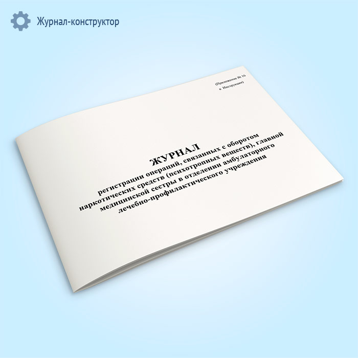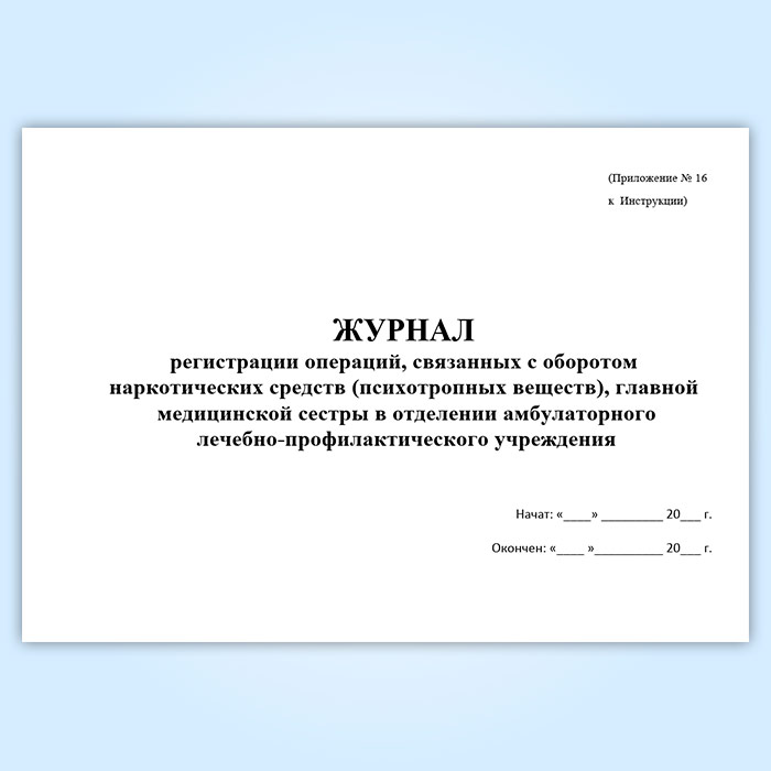 Журнал регистрации операций, связанных с оборотом наркотических средств (психотропных веществ), главной медицинской сестры в отделении амбулаторного лечебно-профилактического учреждения в Улан-Удэ купить