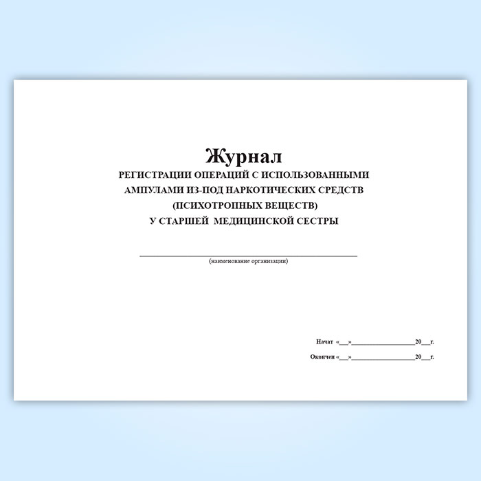 Журнал регистрации операций с использованными ампулами из-под наркотических средств (психотропных веществ) у старшей медицинской сестры в Улан-Удэ купить