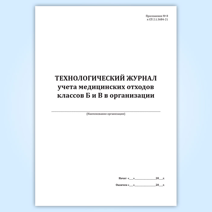 Технологический журнал учета медицинских отходов классов Б и В в организации в Улан-Удэ купить