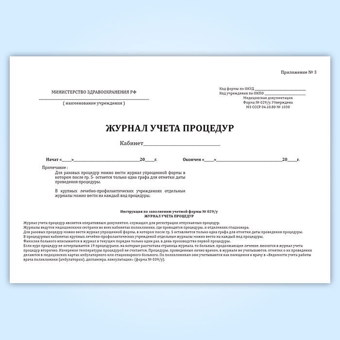 Журнал учета процедур (форма № 029/у) в Улан-Удэ купить